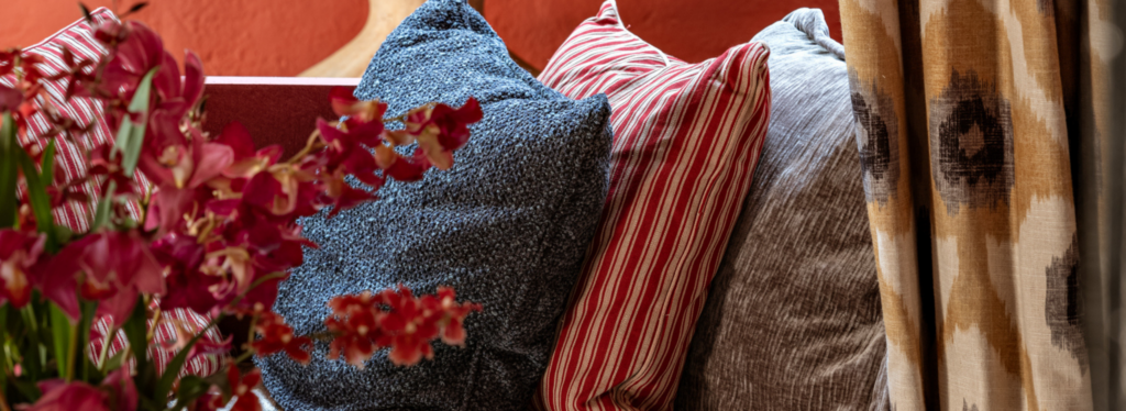 Outro ponto importante é pensar no equilíbrio. Você pode escolher uma estampa principal e deixá-la dialogar com almofadas lisas, ou criar um mix cheio de informação, mas com uma paleta de cores bem definida. O segredo está em testar, trocar, mover, experimentar. Almofadas permitem essa liberdade criativa sem compromisso.